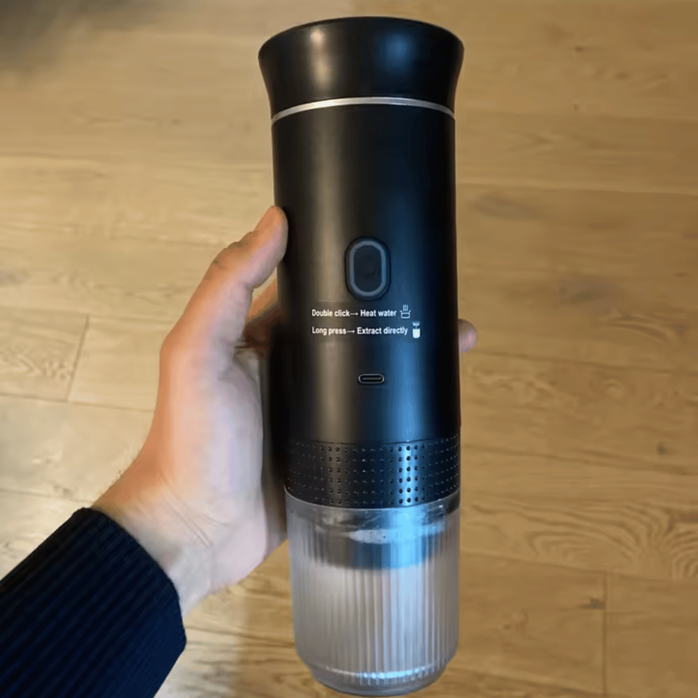 Most customers notice better coffee on the go right away. The 20 Bar pressure pulls a fuller tasting espresso, the one button modes make it simple, and the compact build fits travel, camping, and car use. With capsule or ground coffee options, you get café style convenience without being stuck near a machine.